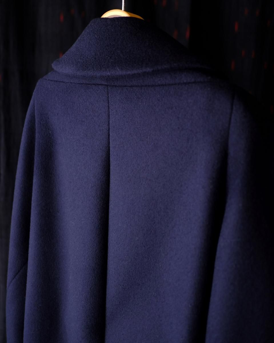 フロントには隠しスナップをひとつだけ。羽織るだけで絵になる佇まいです。