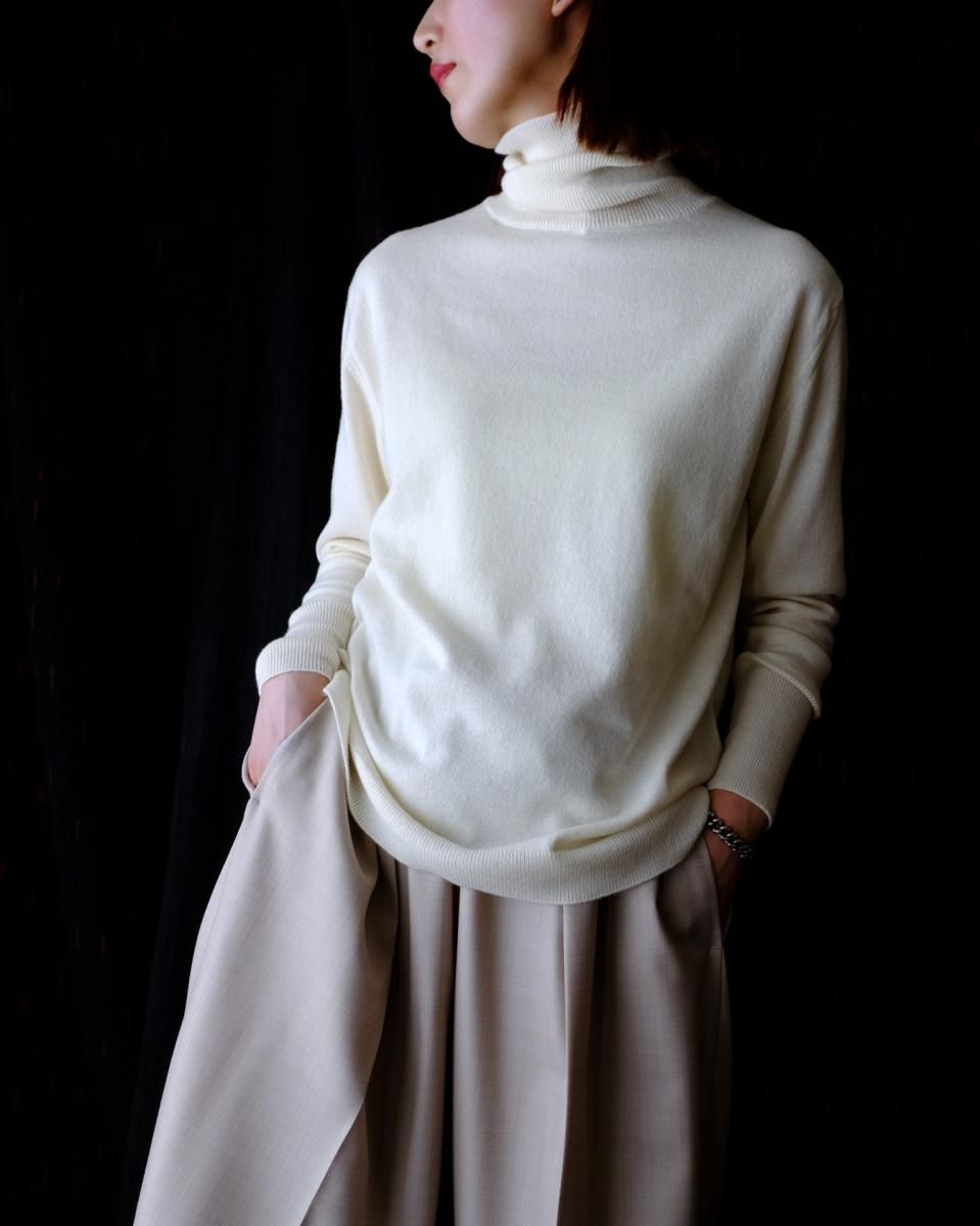 SOMBRELOで毎シーズンご好評いただいているカシミヤシルクのタートルネックニット。