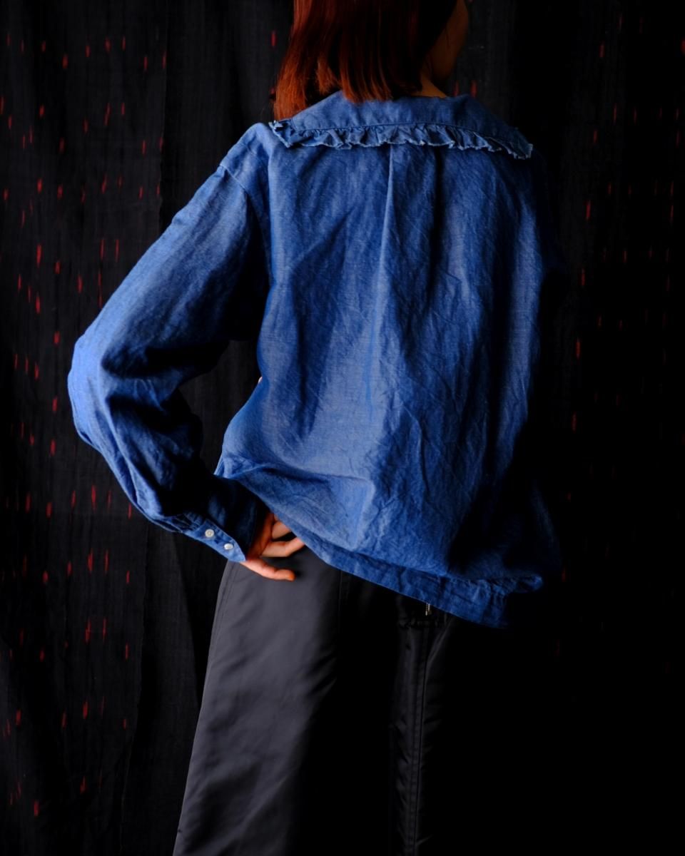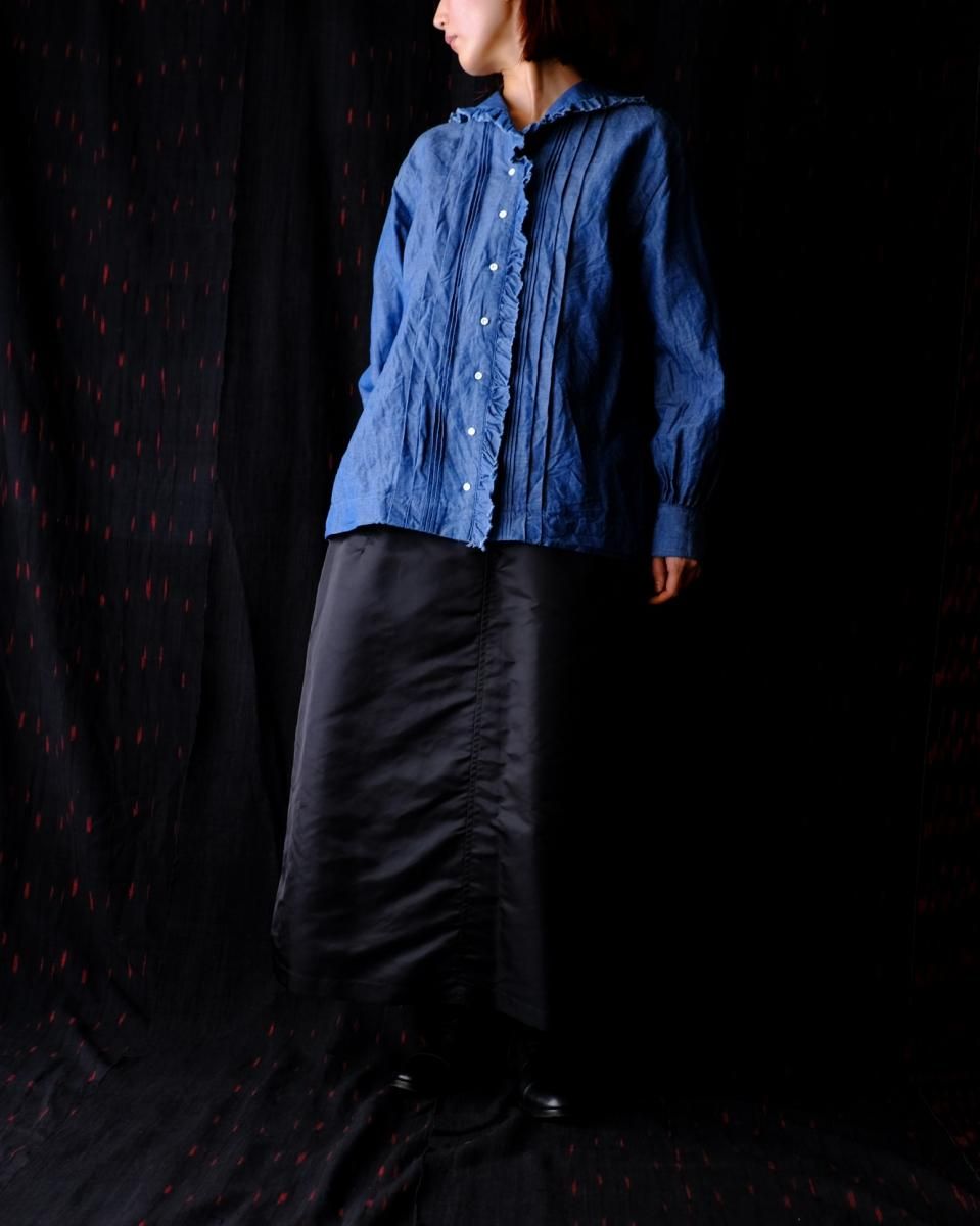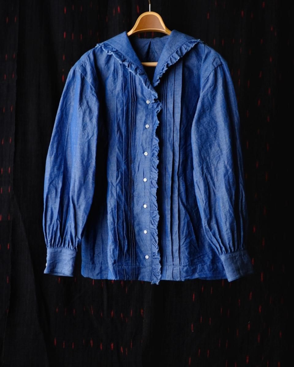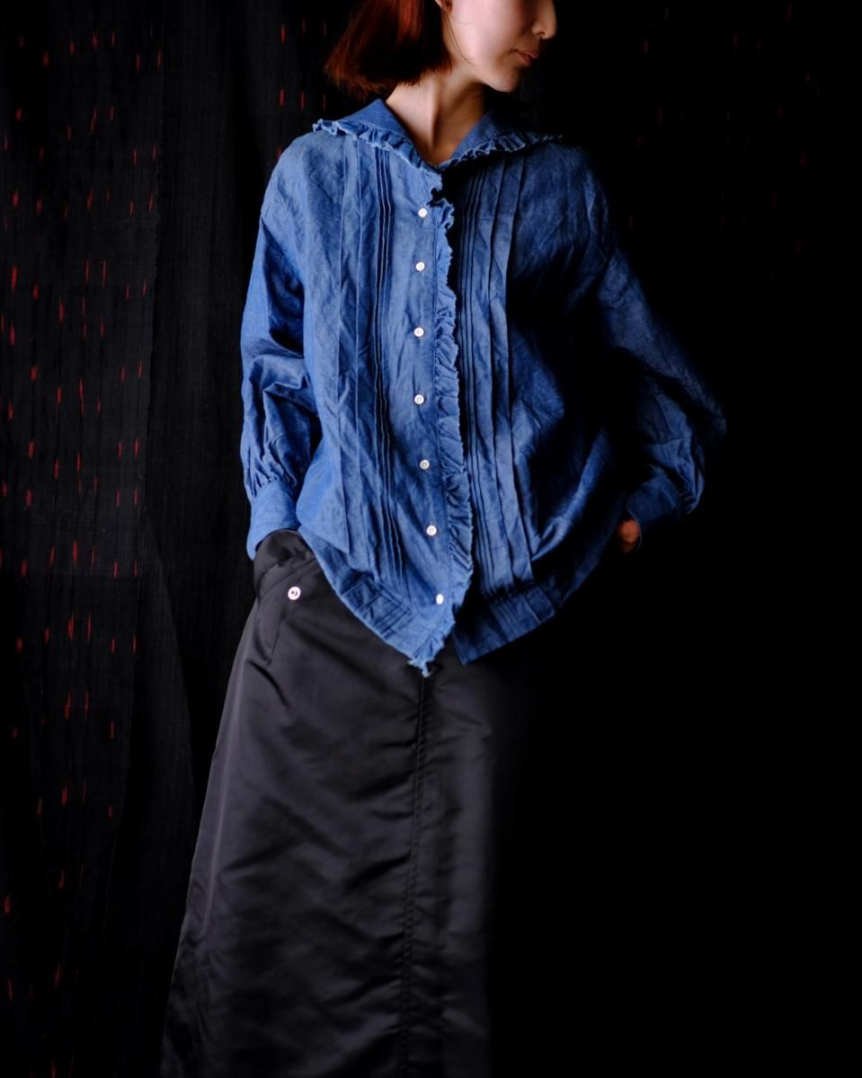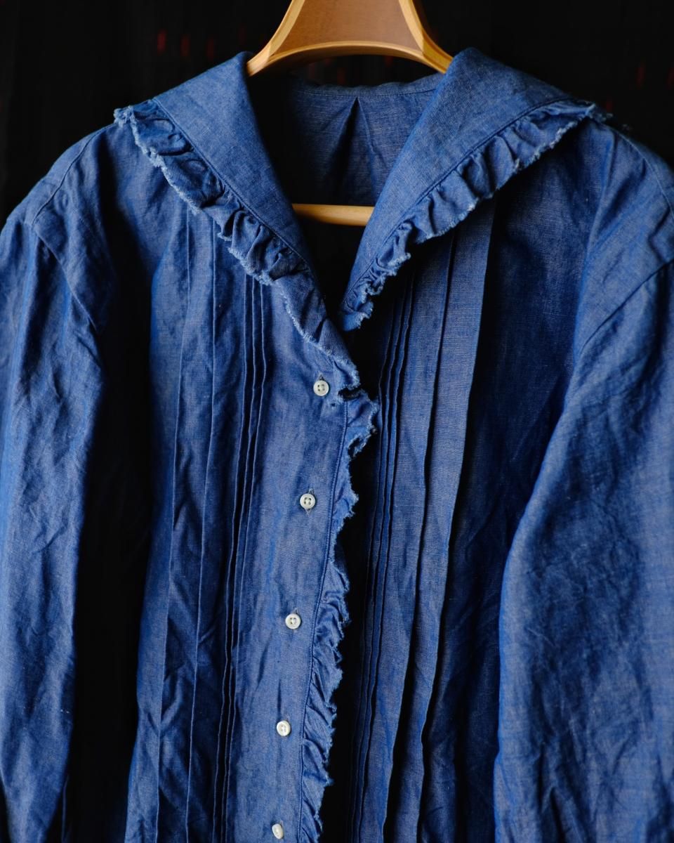 胸元には繊細なピンタックを施し、セーラーカラーの縁にはフリルをあしらった華やかなデザイン。