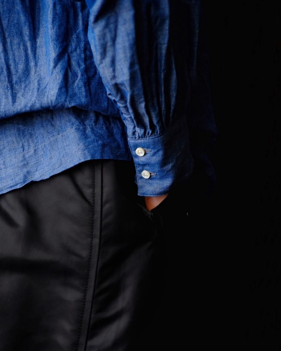 ほどよい厚みとふくらみのある高密度のコットンリネン生地は、季節を問わず快適に着ていただけます。