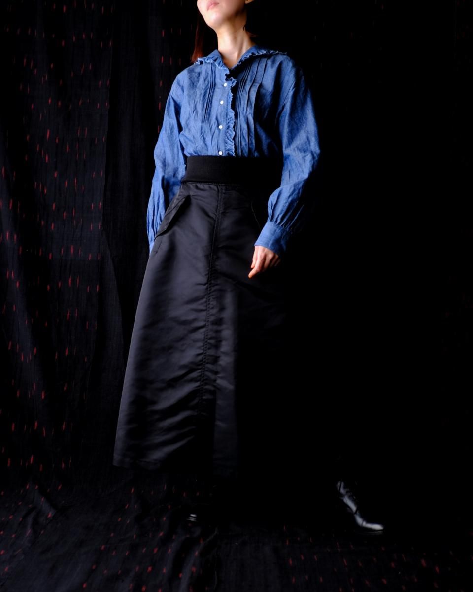 フリルのデザインは甘くなりがちですが、ナイジェルの手にかかるとミリタリーの要素が程よく効き、どこかハンサムな印象に仕上がっています。