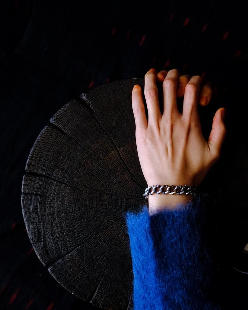完成したブレスレットは、心地よい重厚感と静かな優雅さが際立ち、手首に乗せた瞬間にその特別感を感じていただける仕上がりです。