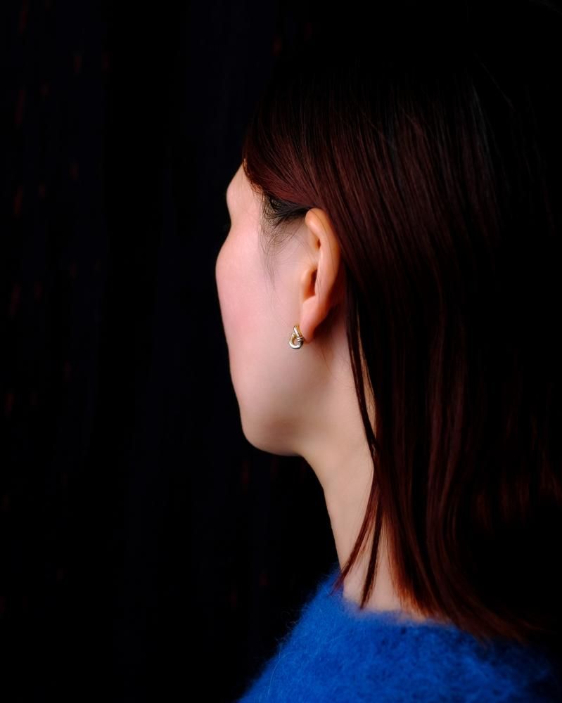 左右ふたつのピースが揃うことで一つの意味を生む、 Eternity Link Collectionを象徴するピアスです。