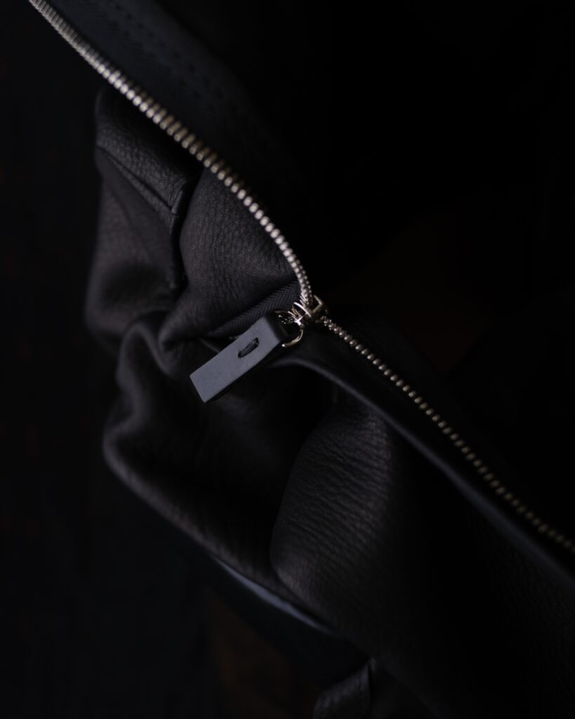 ジビエレザーならではの天然のシボ感が、一点一点異なる表情として、確かな存在感を作り出しています。