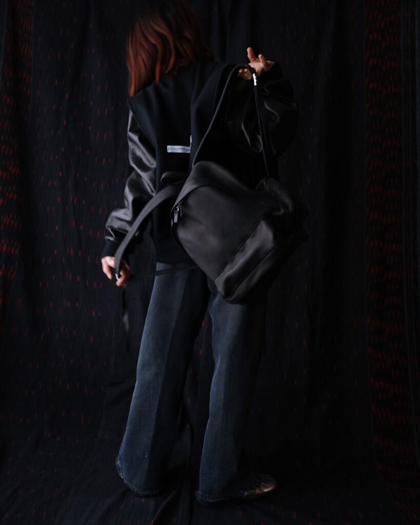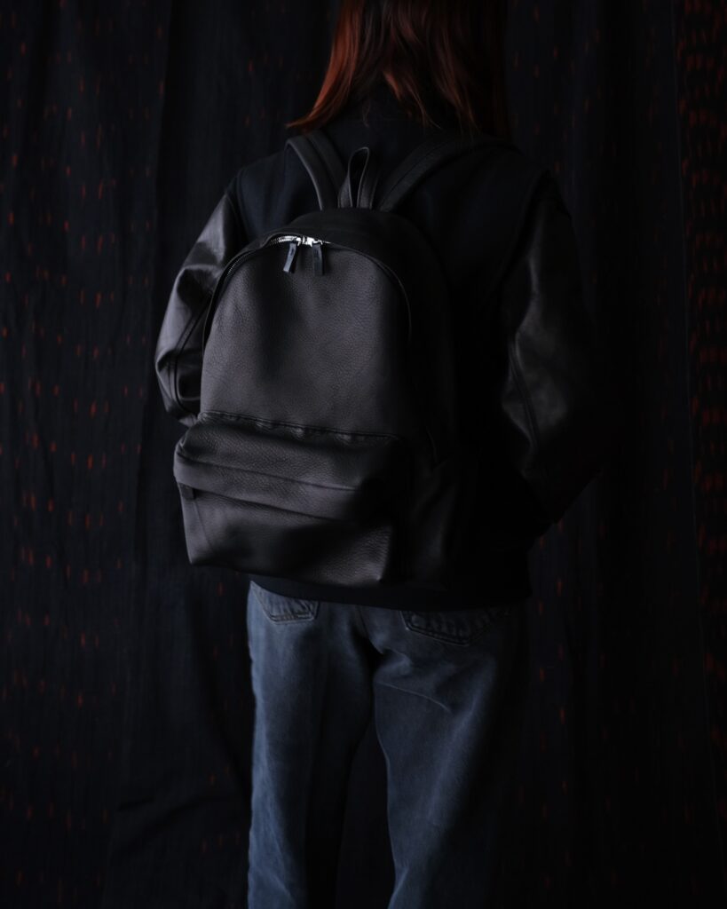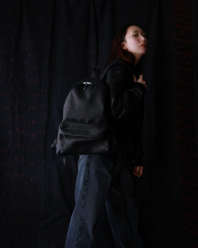 見た目は軽やかで、実際に背負うとレザーとは思えないほど軽い。